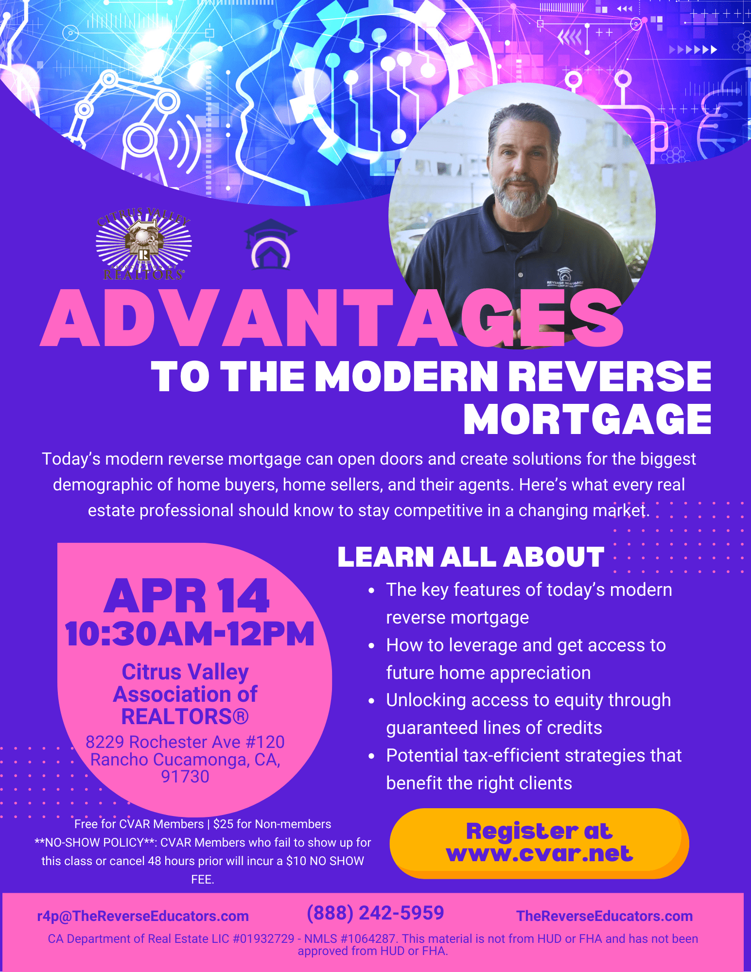 **NO-SHOW POLICY**: CVAR Members who fail to show up for this class or cancel 48 hours prior will incur a $10 NO SHOW FEE.