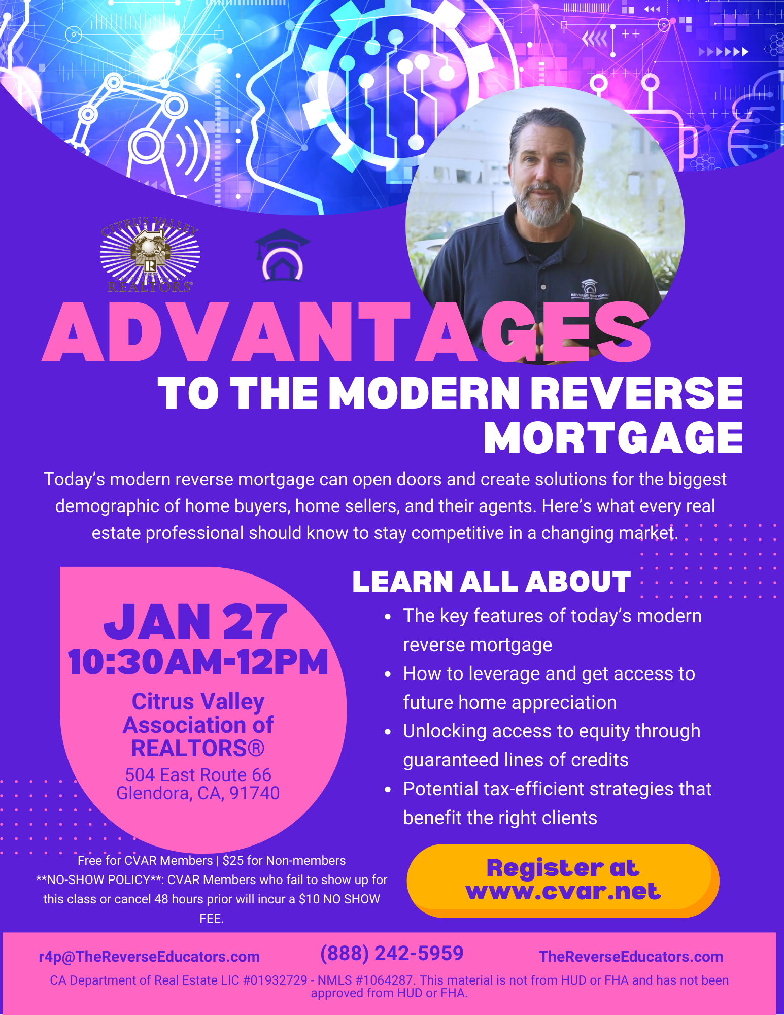 **NO-SHOW POLICY**: CVAR Members who fail to show up for this class or cancel 48 hours prior will incur a $10 NO SHOW FEE.